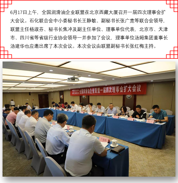 湯姆集團董事長湯建華應邀出席全國潤滑油企業聯盟一屆四次理事會!