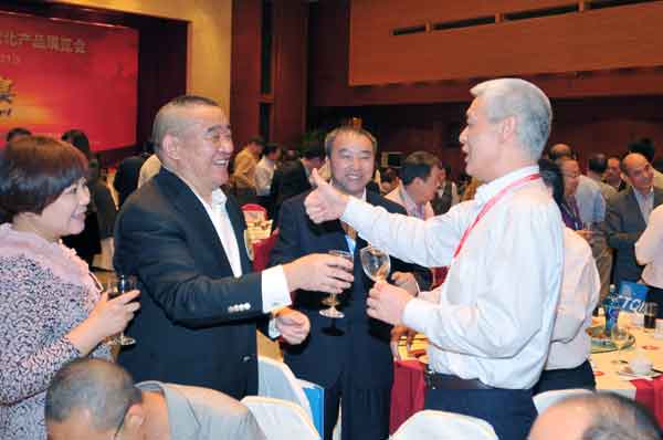 湯建華、湯建定與中國(guó)農(nóng)藥工業(yè)協(xié)會(huì)會(huì)長(zhǎng)孫叔寶在一起