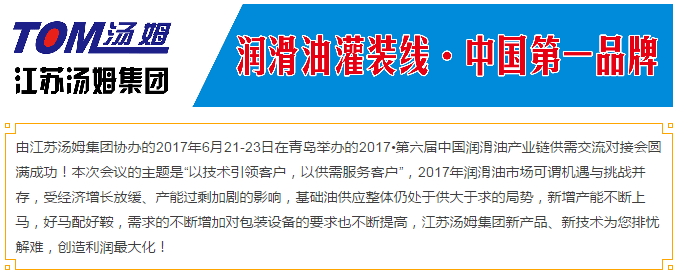【會議】熱烈祝賀由江蘇湯姆集團協辦的2017?第六屆中國潤滑油產業鏈供需交流對接會圓滿成功!