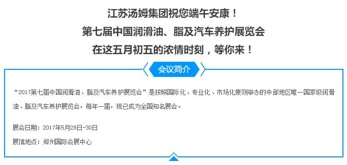 濃情端午,江蘇湯姆與您相約第七屆中國潤滑油、脂及汽車養護展覽會!