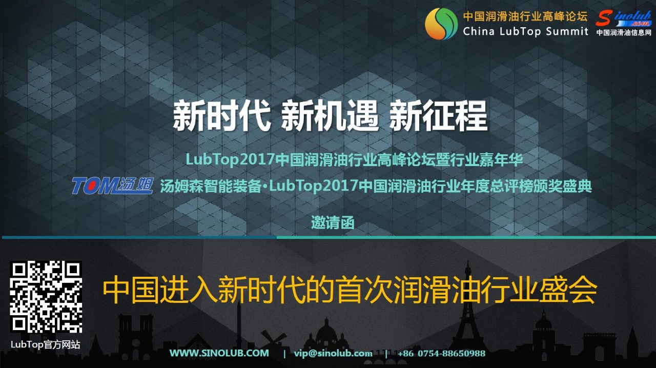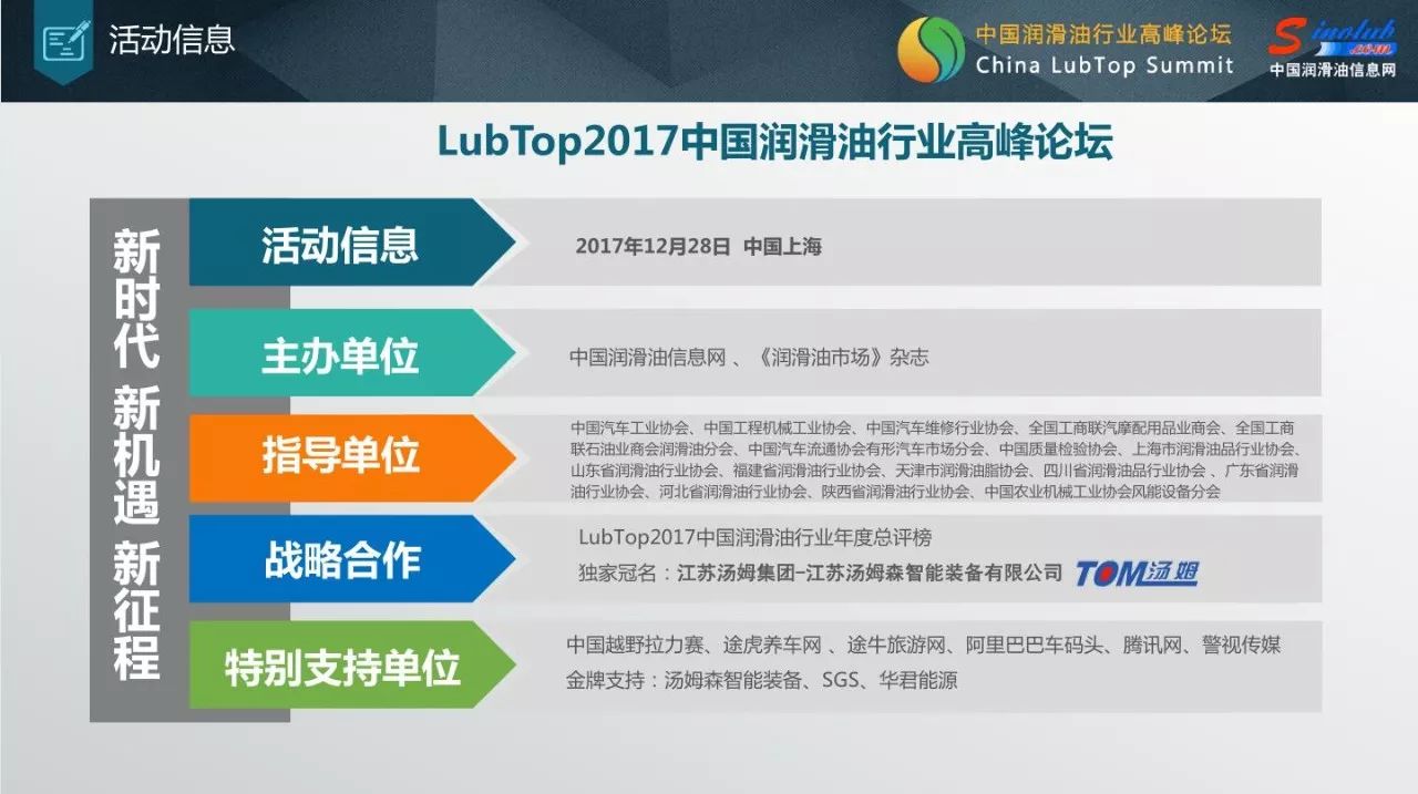 【潤滑油行業(yè)總評榜】江蘇湯姆集團(tuán)獨(dú)家冠名Lubtop2017潤滑油總評榜,與您共登方舟,助您快速駛向工業(yè)4.0!