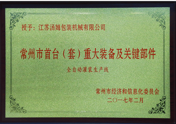 常州市首臺(套)重大裝備企業
