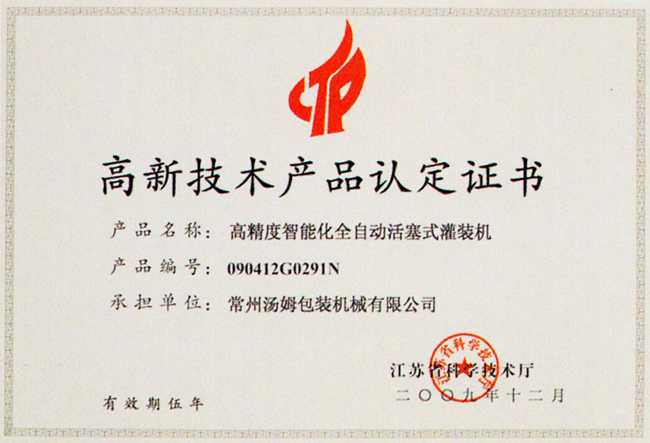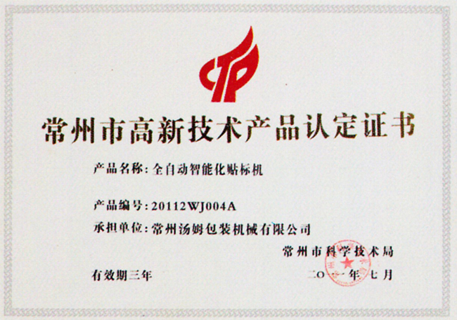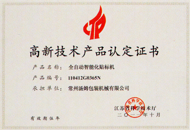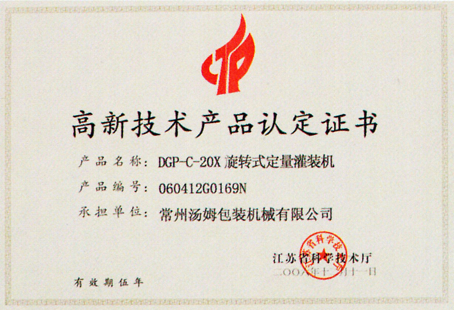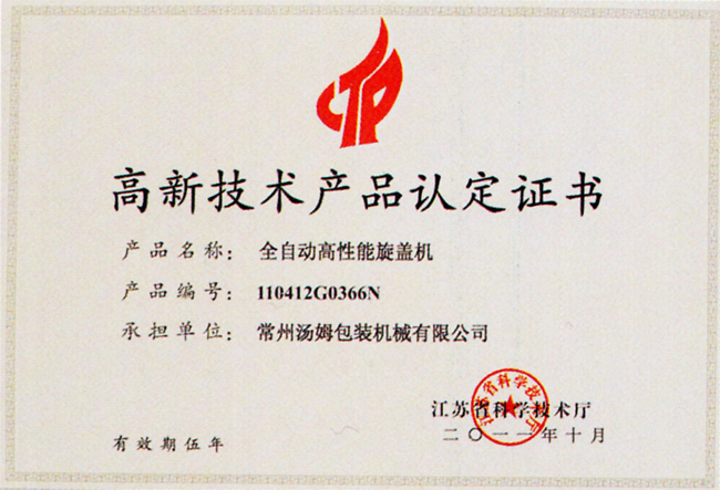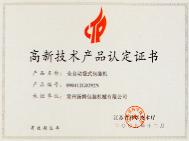 高新技術產品認定證書