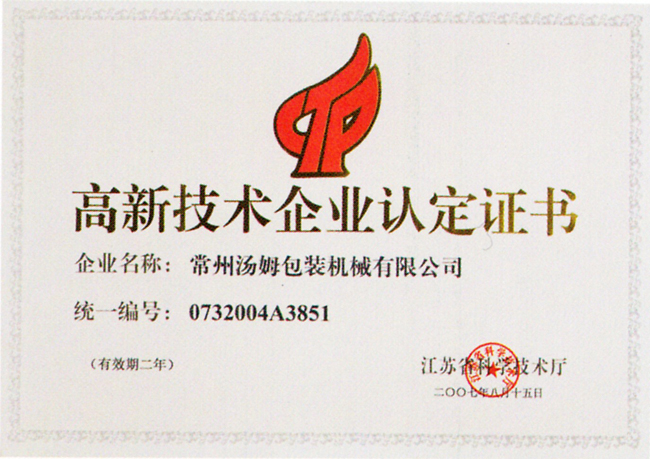 高新技術企業認定證書