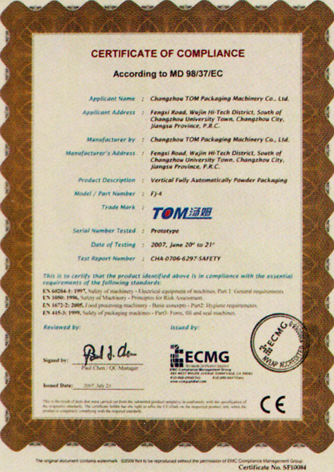 Certificate of compliance