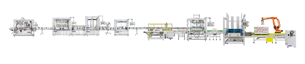 2、整線自動化程度高,由理瓶-灌裝-旋蓋-上蓋-噴碼-鋁箔封口-貼標-開箱-裝箱-檢重-供棧-碼垛等設備組成。流水線配備 高速灌裝、旋蓋機,