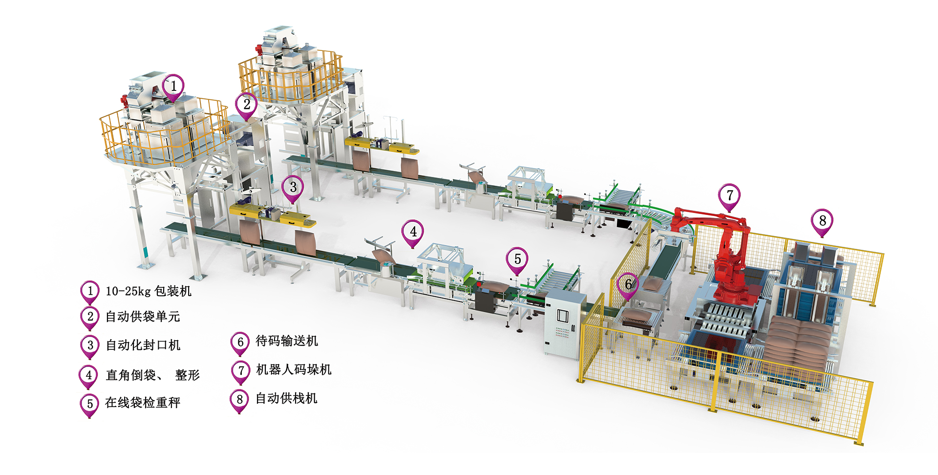 1、本線適用于農(nóng)藥、化工20-50kg粉劑、顆粒等物料的包裝。
